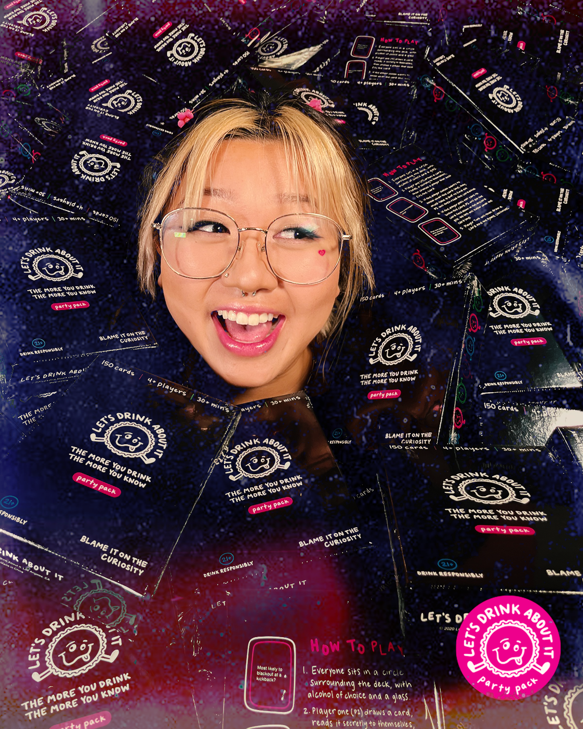 LET'S DRINK ABOUT IT is a drinking game where the more you drink, the more you know.